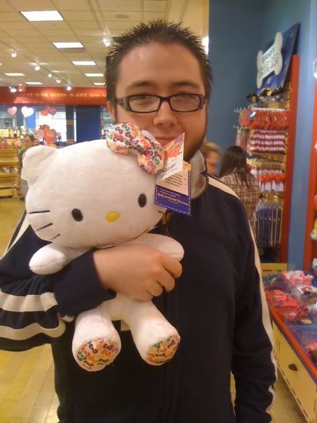Fairly recent photo of me, enjoying my new Hello Kitty. The most un-manly of my likes. XD