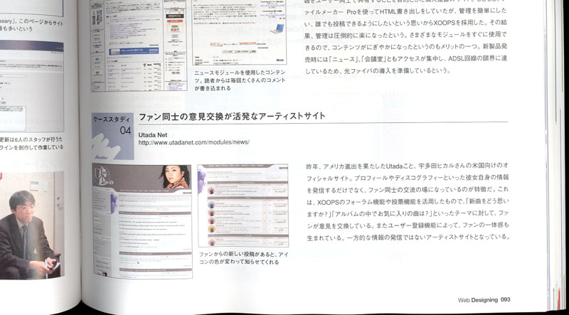 UtadaNet.com is currently being featured in the 2005/3 issue of "Web Designing" Magazine. It's a Japanese print magazine specializing in the design of online content.